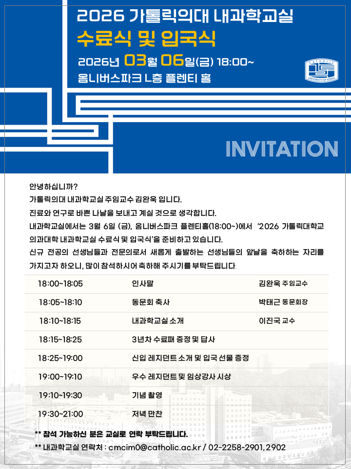 2026 가톨릭의대 내과학교실 수료식 및 입국식